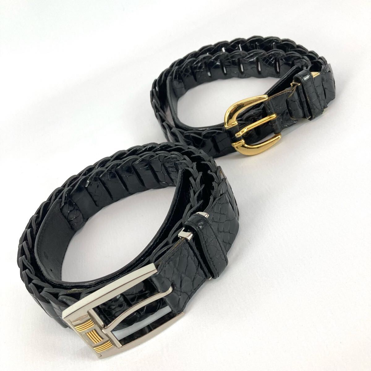 - ST ROUGE CROCODILE クロコダイル 光沢 シャイニング エキゾチック 本革 レザーベルト メンズ 紳士小物 ブラック 黒