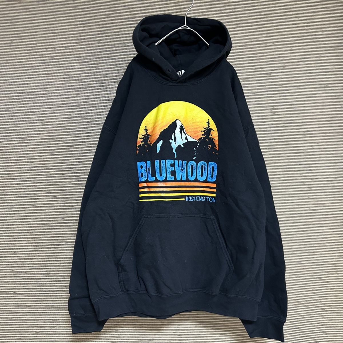> ギルダン パーカー ワシントン ボタニカル 山 夕焼け デカロゴ 黒15 古着 入手困難 激レア 希少 人気 ブラック オレンジ