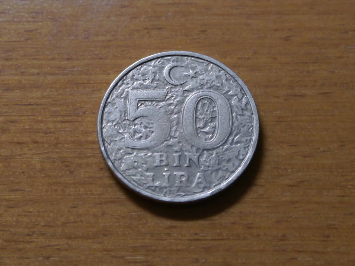 - トルコ 旧5万トルコリラ硬貨 50BINリラ 1999年