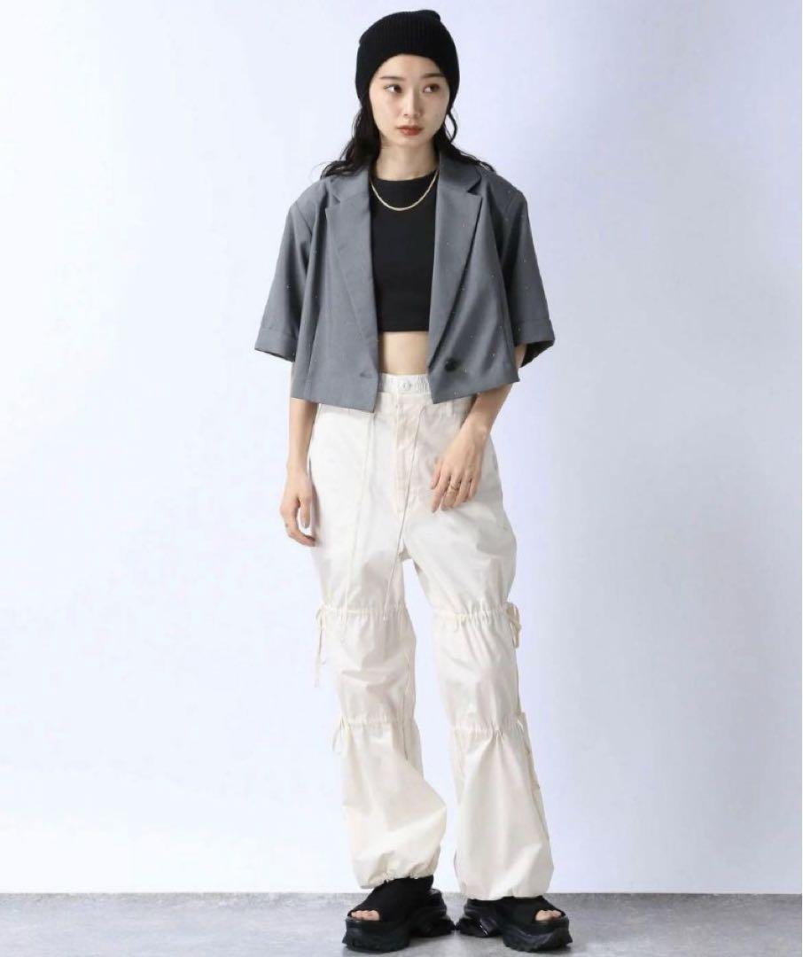 - ジーナシス JEANASIS ダブルウエストカーゴパンツ【S】グレー