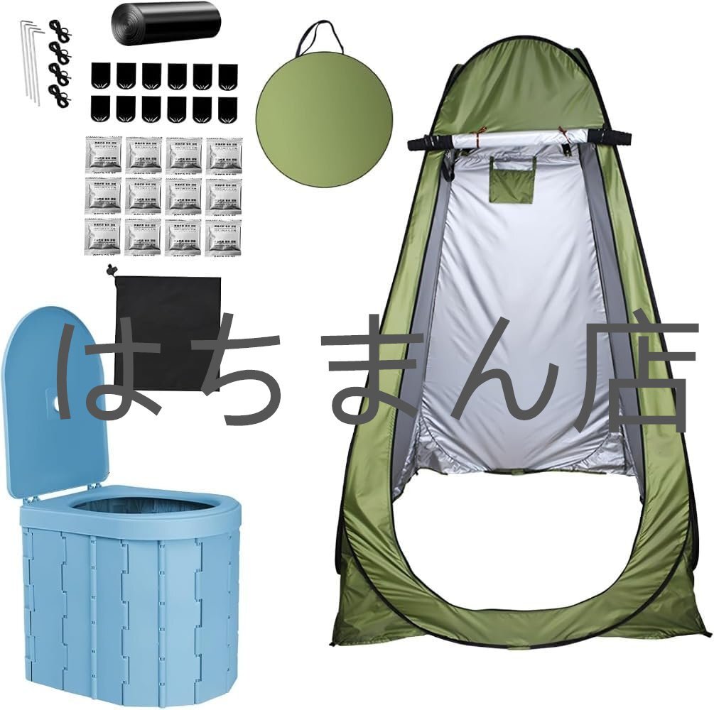 > 簡易トイレセット 防災 トイレ えテント折りたたみ アウトドア キャンプ 防災グッズ 登山 渋滞 (テント+簡易トイレ(ホワイト))(ブルーです)