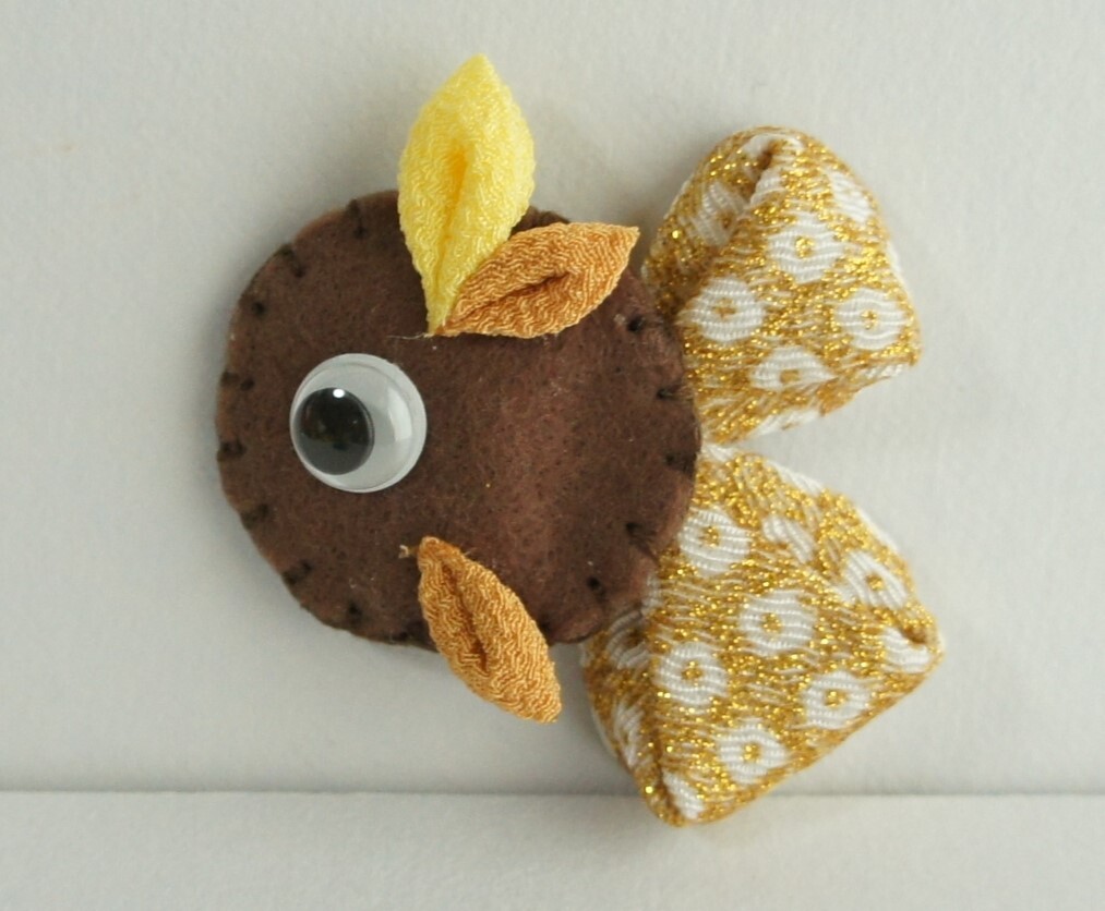 - ♪ ハンドメイド きんぎょ 金魚 ブローチ ちりめん つまみ細工 フェルト 動眼 綿入り
