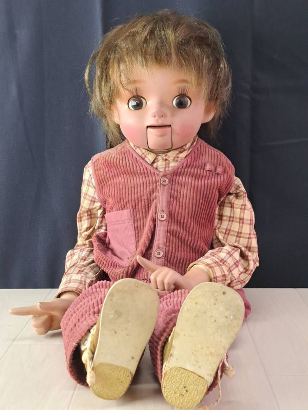 - 昭和レトロ アンティーク レア レトロ 腹話術 人形 男の子 (洋服BA-TSU / MIKI HOUSE ) まばたき・口・右手動作確認済み 現状品
