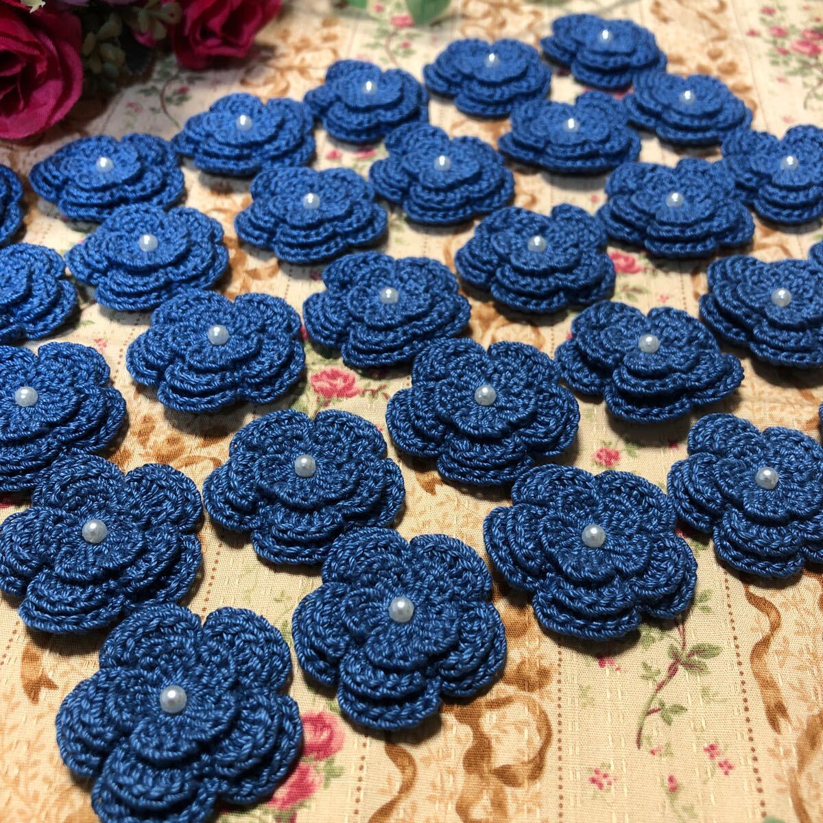 - (No.204)☆ハンドメイド☆3重お花30枚【フォグブルー】モチーフ パーツ等に 編み重ねタイプ