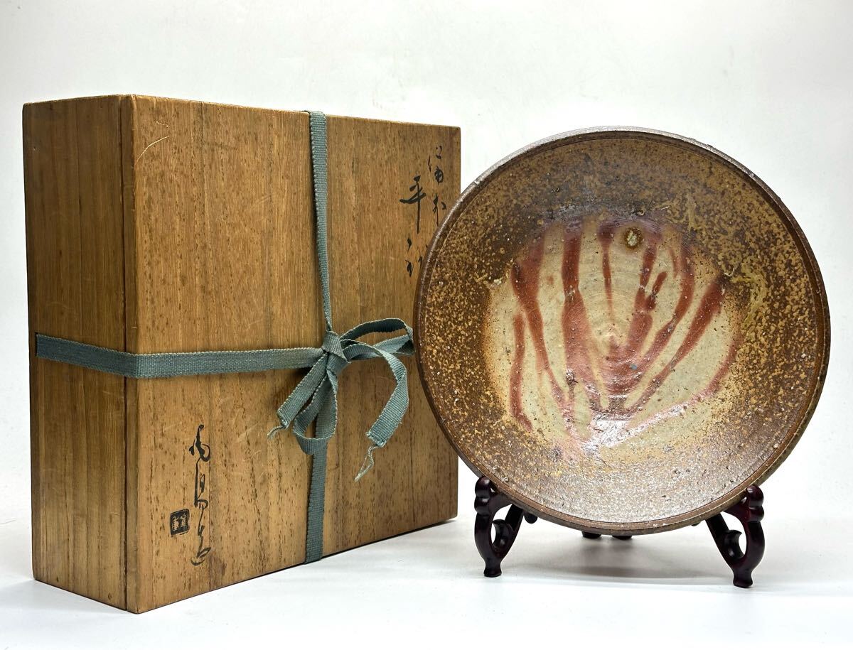 - 本物保証 人間国宝 金重陶陽 備前 平鉢 緋襷 共箱