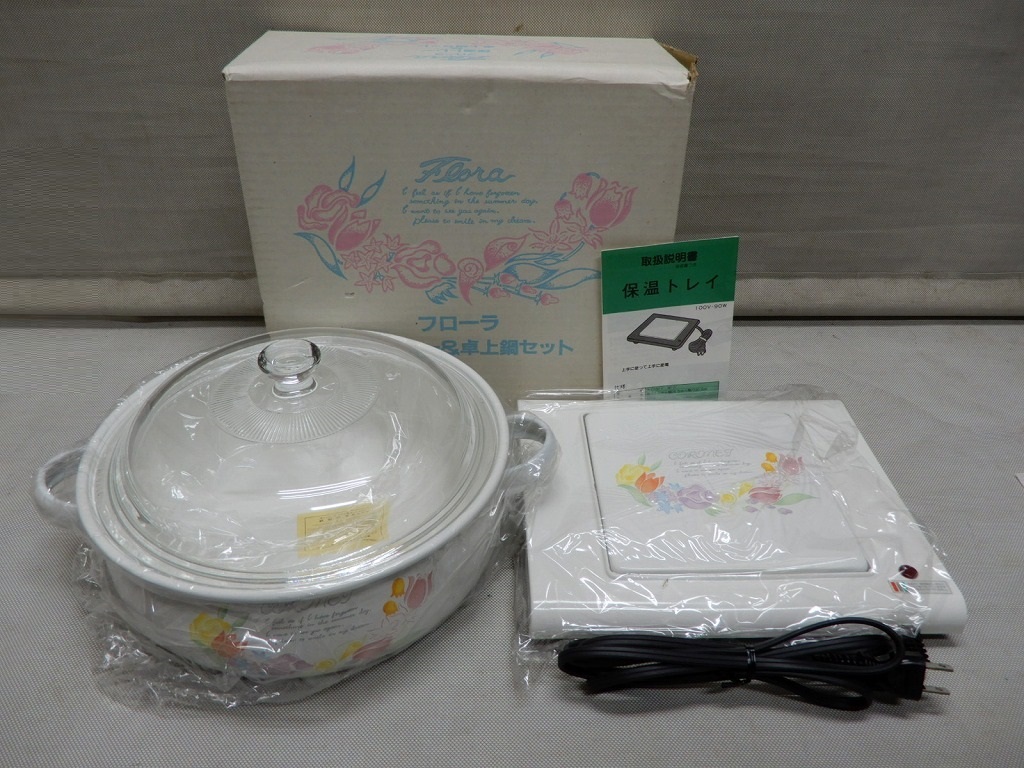 - ●フローラ 保温トレー&卓上鍋セット ガラス蓋 ホーロー鍋 両手鍋 丸山技研●