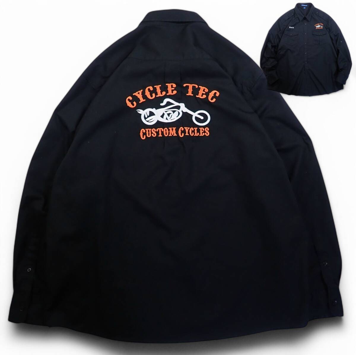 - 6407/美品 PORT AUTHORITY 長袖ワークシャツ 2XL●CYCLE TEC CUSTOM CYCLES バイク刺繍 エポーレット付●洗濯プレス済●ネコポス可●古着