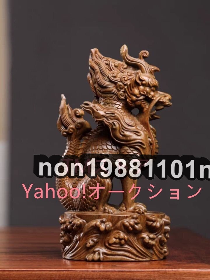 - 木彫り 置物 麒麟 置き物 風水 高級天然緑檀木 木彫り 金運 置物 風水グッズ (高さ12 cm)