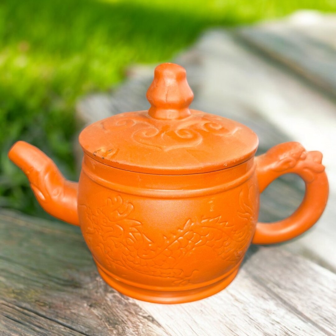 - 【FU10】某有名資産家放出品 中国美術 中国骨董 アンティーク 急須 刻印あり 龍 朱泥 美品