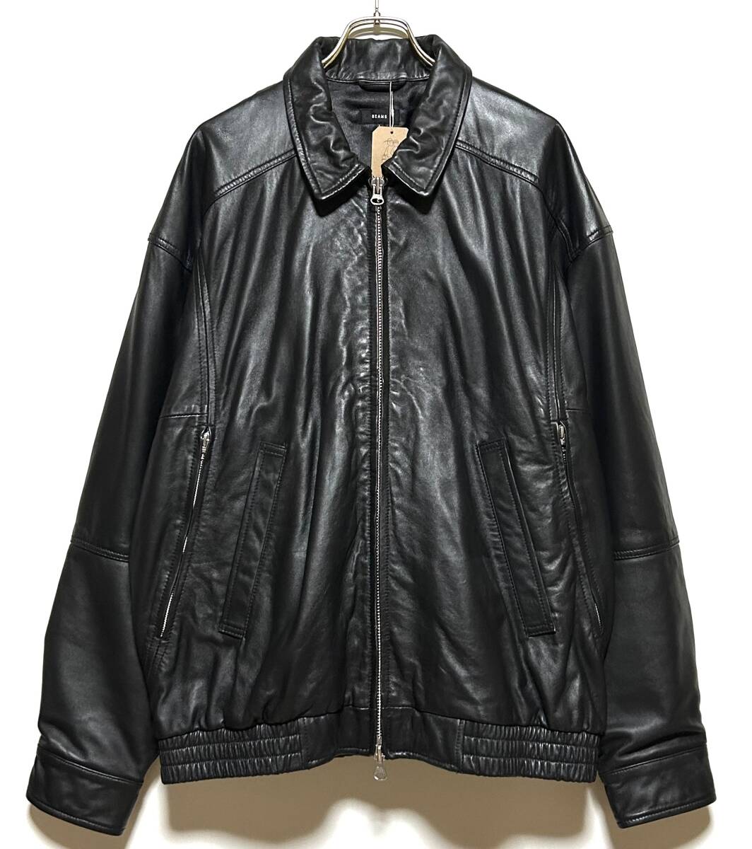 > BEAMS レザー ブルゾン(L)黒 ビームス レザージャケット 革ジャン オーバーサイズ ルーズ ボックスシルエット シープスキン 羊革