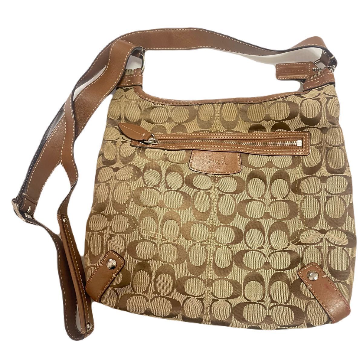 > COACH コーチ ショルダーバッグ キャンバス シグネチャー ブラウン系 ポシェット F14689