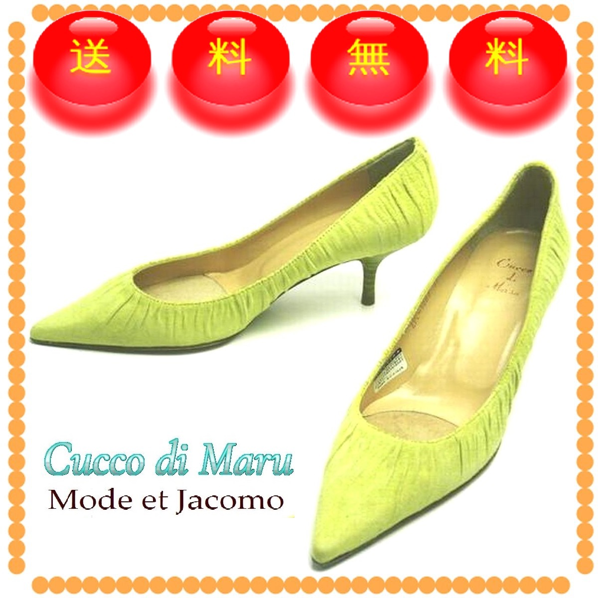 > 23cm イエロー 本革スエードパンプス 6cmヒール ポインテッドトゥ クッコディマル モードエジャコモ 本州送料無料 R9698