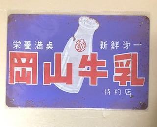 - 【 SS ⑦ 】☆岡山牛乳☆ レトロ ☆ ブリキ看板 ☆