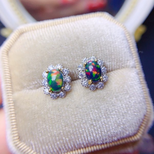 女性用ナチュラルブラックオパールピアス、スターリングシルバー925、ファインジュエリー、ウェディングチャーム