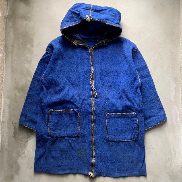 > 【Ladies】70s UNKNOWN ジップアップ ウールジャケット 青■ビンテージ レトロ アメリカ古着 レディース パーカー エスニック 民族