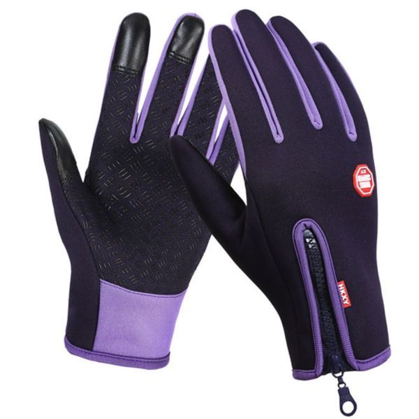 - 手袋 メンズ レディース 防寒 最強 バイク スマホ対応 自転車 登山 釣り パープル Mサイズ
