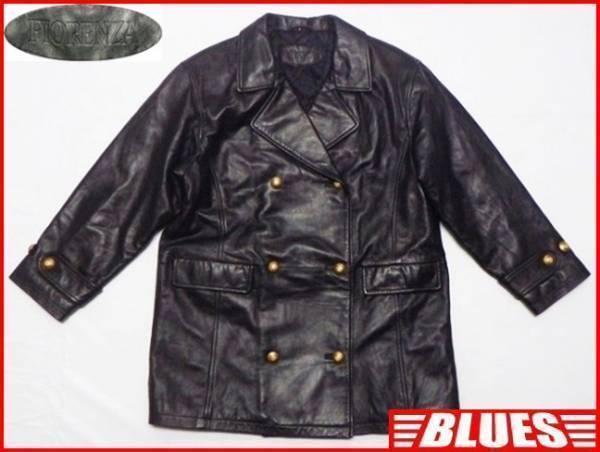 - 即決★FIORENZAフィオレンツァ★レディースL ダブル レザーコート 黒 ブラック ビジネス ロングコート 本革 アウター ジャケット 革ジャン