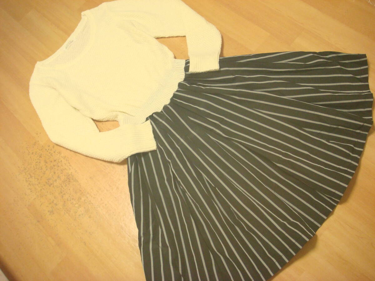 - ナイスクラップ ニット切り替え ワンピース ストライプ ホワイト×ネイビー 良品
