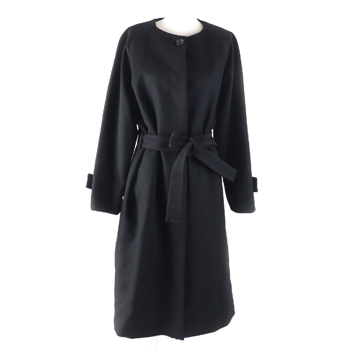 > 未使用品★PS Paul Smith ピーエス ポールスミス ウール カシミヤ混 ベルト付 比翼仕立て ロング丈 ノーカラーコート 黒 44L 正規品