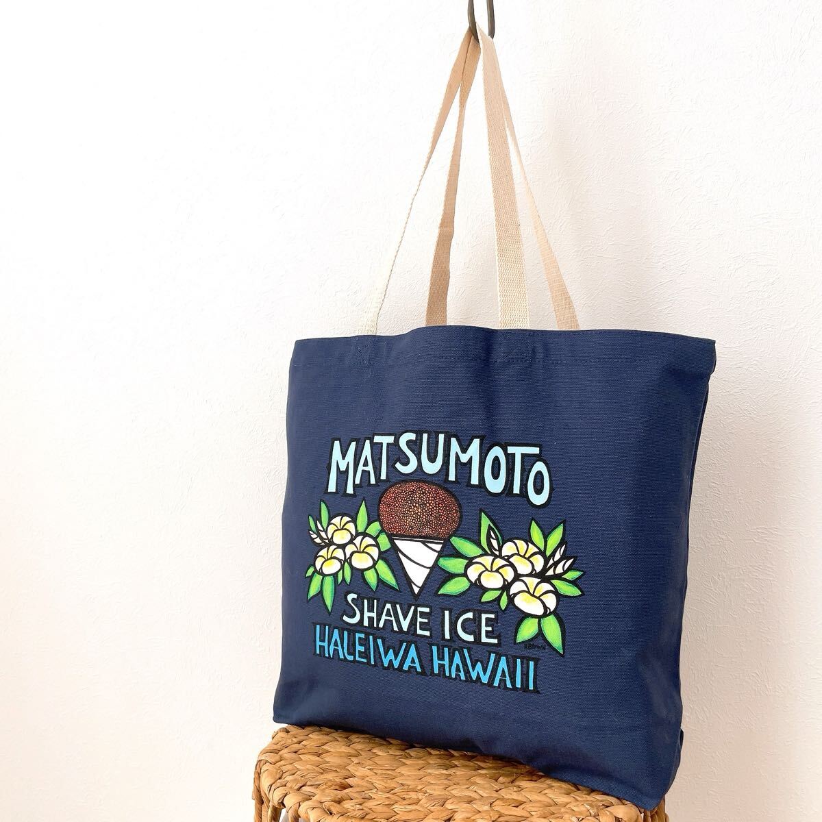 - 新品ハレイワmatsumotoshaveiceマツモトシェイブアイスホノルルHonoluluトートバッグHAWAIIハワイ青エコバッグ ブルー紺ショルダーバッグ