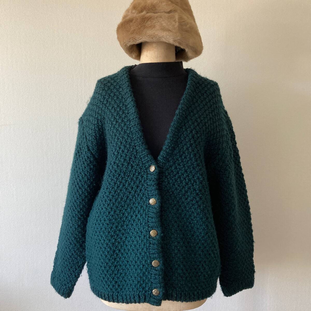 - *USED 手編みニットカーディガン/ハンドメイド品 古着 レディースLサイズ