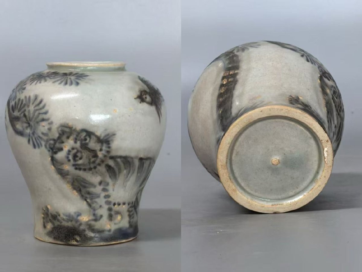 > ▼渡鶴羽▼E512コレクター放出 朝鮮古美術 高麗磁 李朝時代 古高麗 高麗白磁染付水盂 李朝18世紀