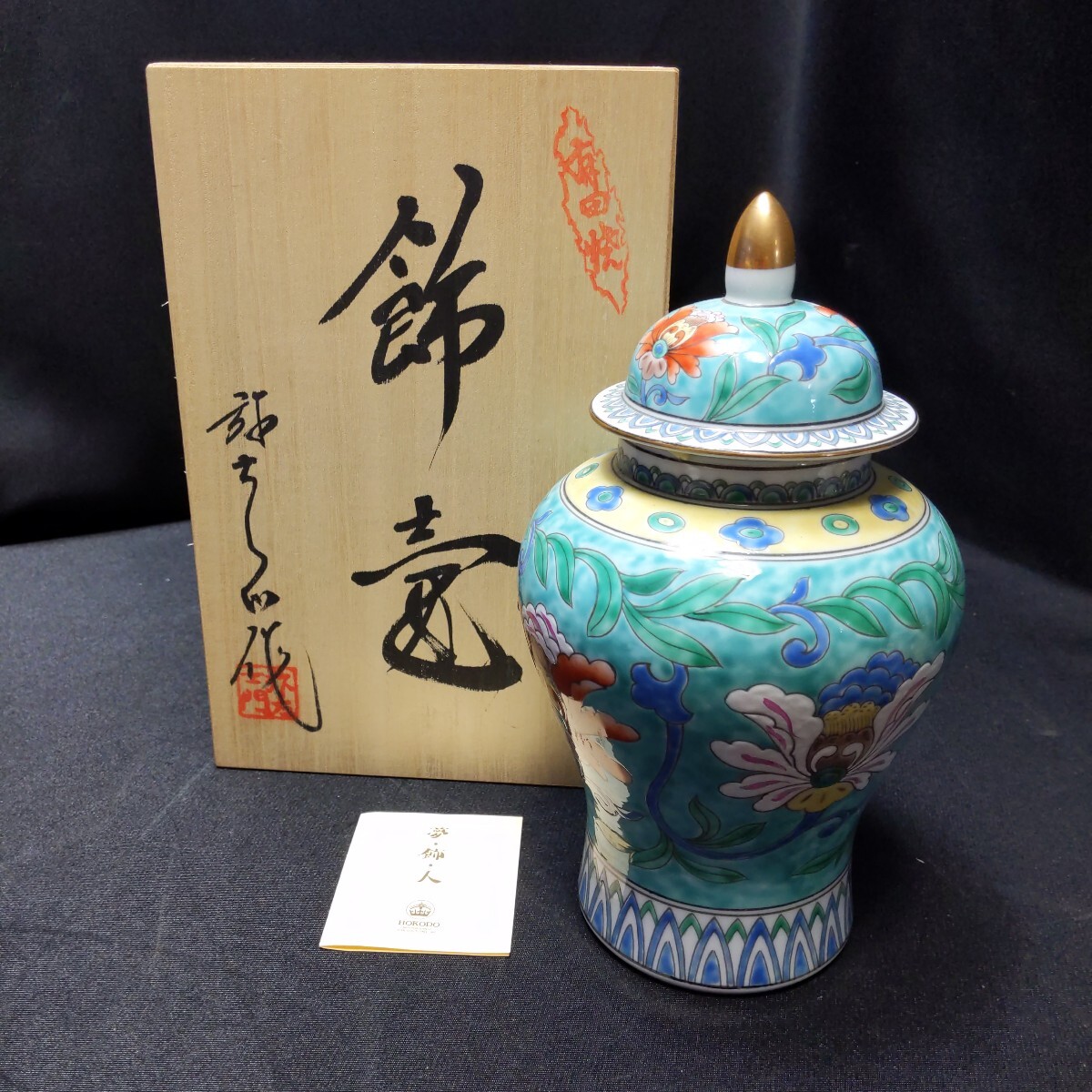 - y366 有田焼 弥右衛門 作 飾壺 置物 金彩 色絵 在銘 25.5cmo