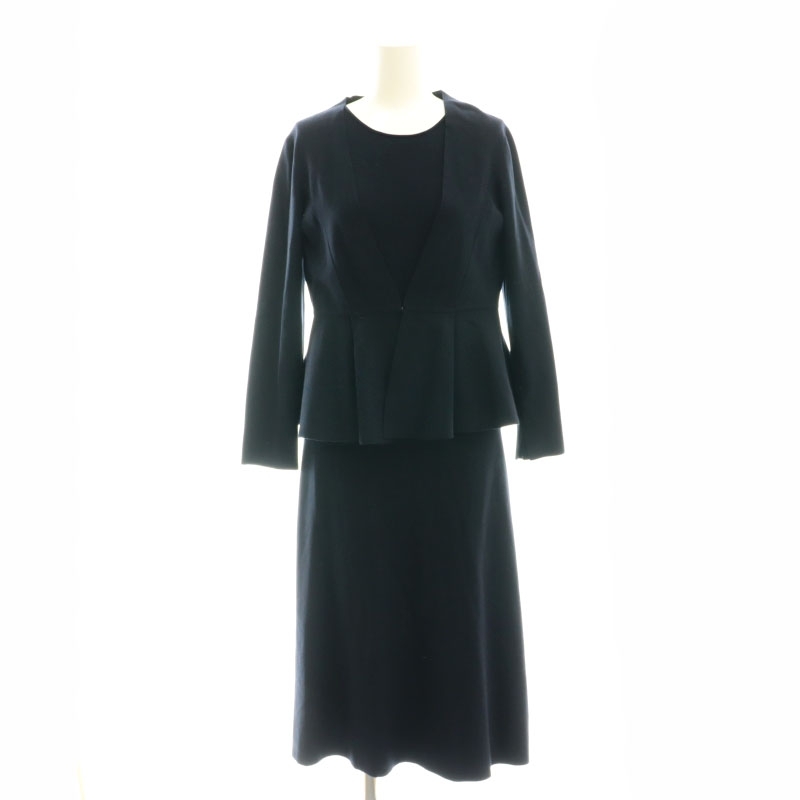 > エストネーション ESTNATION ニット ペプラムジャケット ワンピース 2点セット 38 紺 ネイビー /YQ ■OS レディース