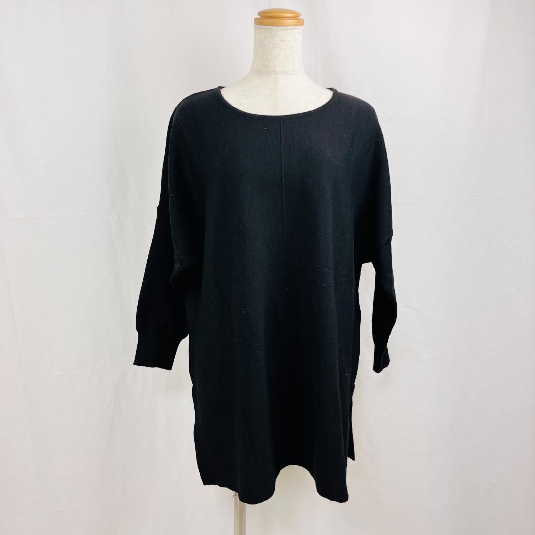 - 【2401】Off-White オフホワイト 黒 ブラック M L 毛 ウール ビアージュ サイドスリット ドロップショルダーニット クルーネック