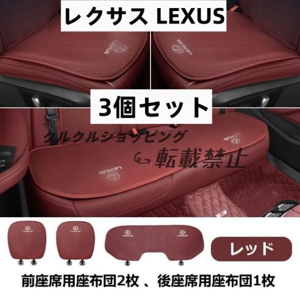 - レクサス LEXUS◆レッド◆シートカバー 椅子カバーマット レーヨン生地 シートクッション【3個セット】