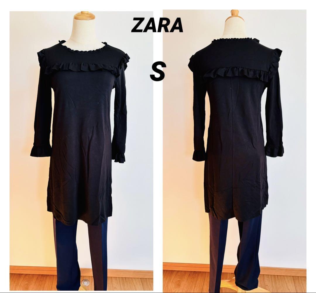 - ZARA ザラ フリル 七分袖 ワンピース ブラック 黒 S フォーマル ジャケットインにもおすすめ