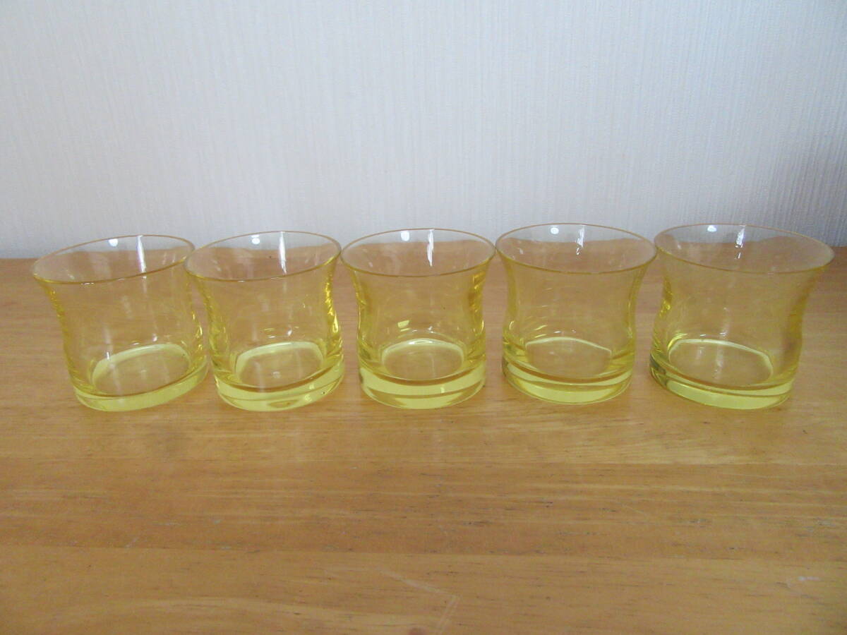 - ★黄色っぽいグラス コップ★5個セット★おしゃれな薄黄色グラス★アンティーク☆未使用☆