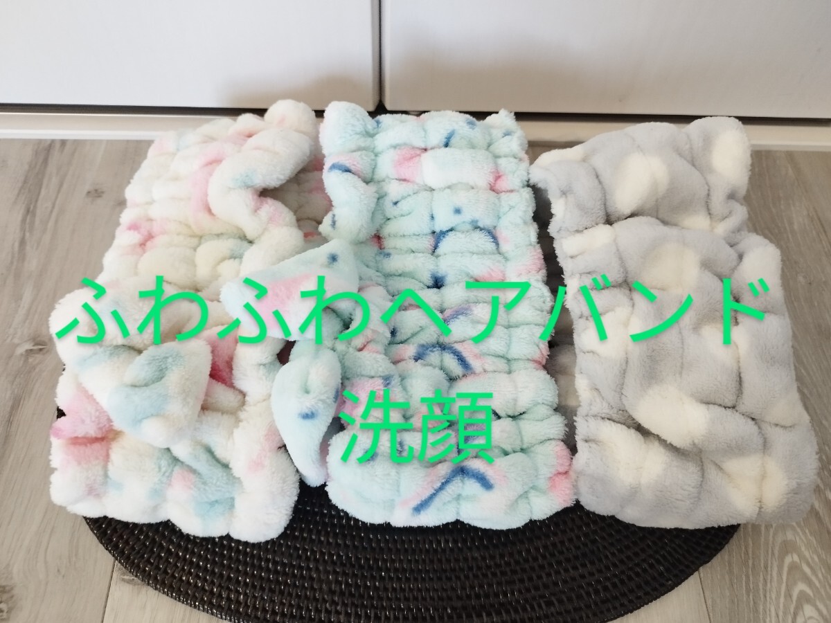 - 匿名配送】USED 美品 洗顔 ふわふわヘアバンド 3個セット ドット メルヘン柄