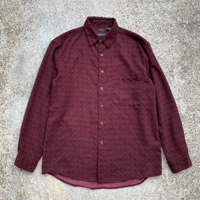 > 【M/L】GEORGE 長袖フェイクスエードシャツ 黒×えんじ 総柄■ビンテージ オールド レトロ アメリカ古着 片ポケ ソフトスエード