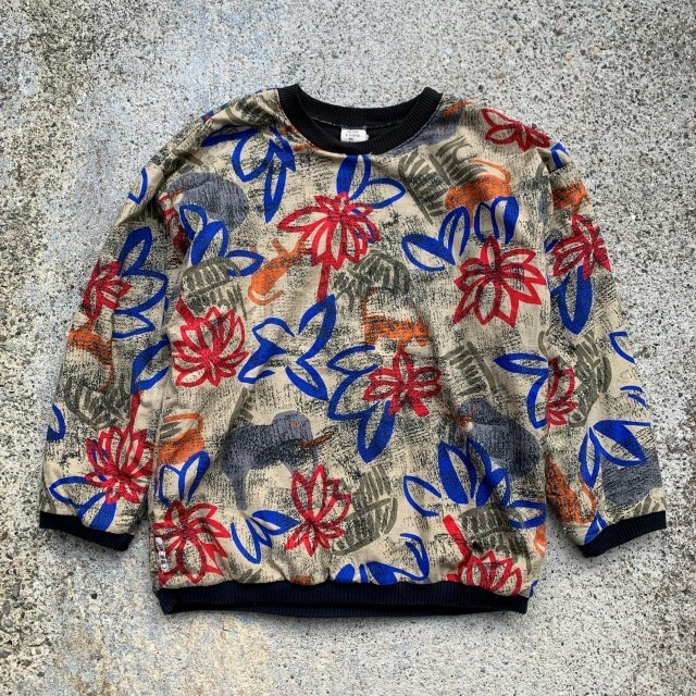 - 【レディース】SALE!! USA製 CHEROKEE ダブルフェイス スウェット 総柄■ビンテージ オールド レトロ アメリカ古着 80s アート
