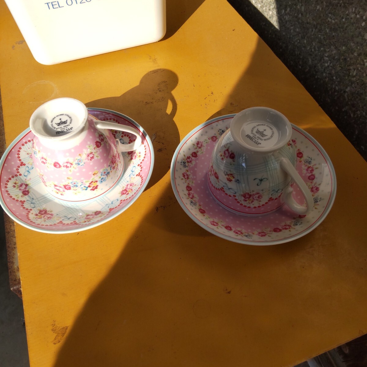 - カップ&ソ―サ―チェック&ドッド柄、ロイヤルガ―デン、色違い、ロ―ズ柄。2個組セット