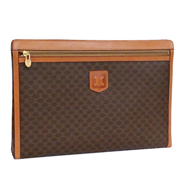 - 送料無料 本物 CELINE セリーヌ 書類カバン クラッチバック ビンテージ マカダム柄 レディース メンズ ブラウン 茶 おしゃれ