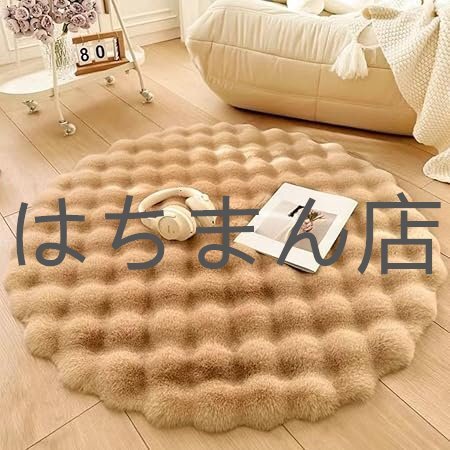 - カーペット ラグ 円形ラグ ラグマット ラビットフア一調 北欧 洗える 畳用 オールシーズン 床暖房対応 小さめ 丸型 絨毯 (カーキです,80cm)