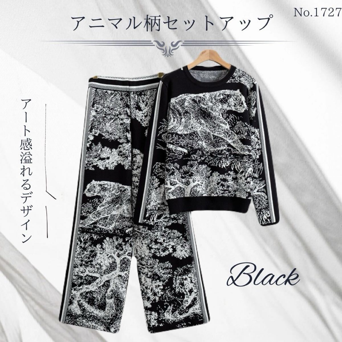 - アニマル柄 セットアップ ブラック 動物柄 トップス パンツ モノトーン 個性派