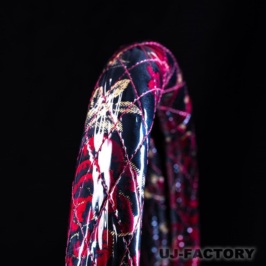 - ★MIYABI/華恋(かれん)・極太ハンドルカバー(ビニール付)レッド/LMサイズ(40.5cm~41.5cm)シングルキルト★車内をドレスアップ!