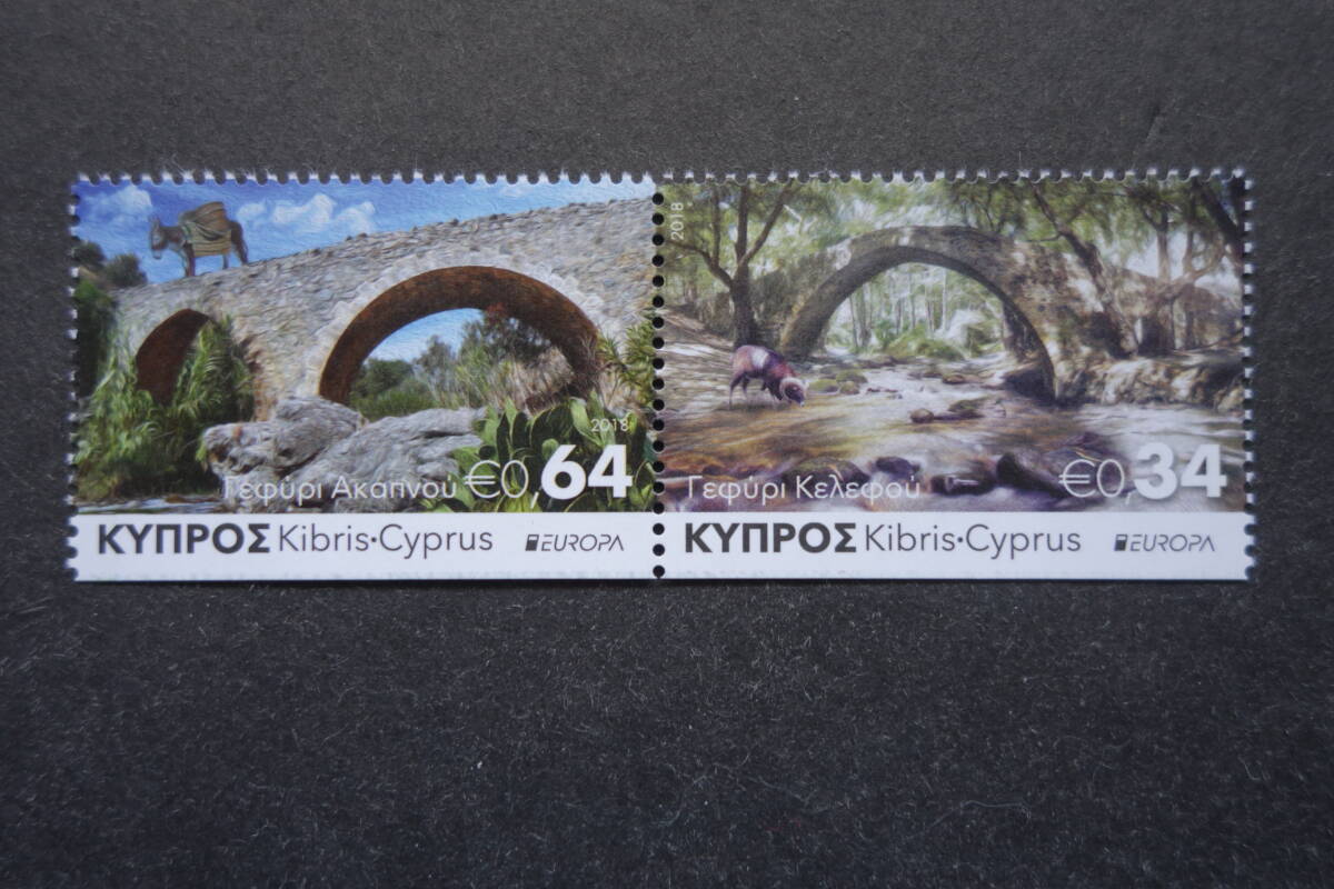 - 外国切手: キプロス切手 「(2018年ヨーロッパ切手)共通テーマ・橋」2種連刷 未使用