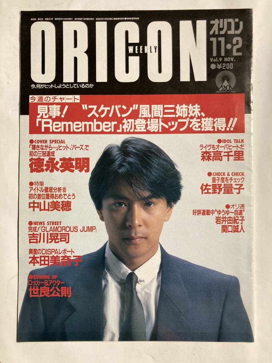 > ORICON WEEKLYオリコン(11.2 Vol.9 NOV.'87)徳永英明グラビア/中山美穂アイドル徹底分析/富田靖子~悲しきチェイサー,仙道敦子~PASSION広告