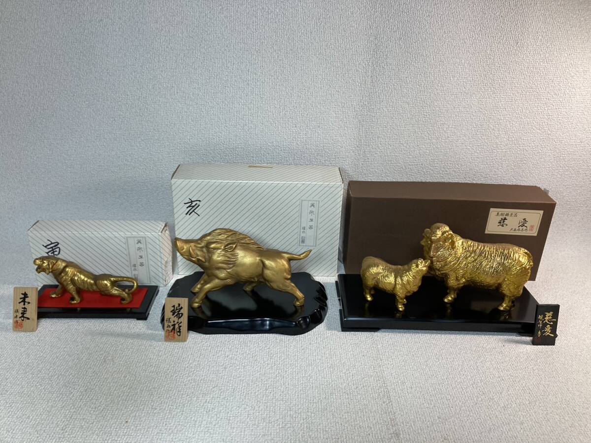 > 干支の置物 3種まとめて 亥 寅 未 環水作 高岡銅器 工芸品 縁起物 インテリア 動物〈H-165〉