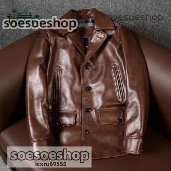 - ホースハイド 復刻30\'s スイッチヤードコート ブラウン L(38) サイズ選択可 カーコート ドライビング ブレーキマン レザージャケット 馬革