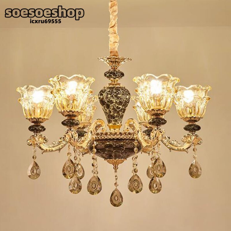 - 高級水晶ペンダントライト 洋風照明 陶器シャンデリア 北欧デザイン シーリングライト 天井照明 6灯