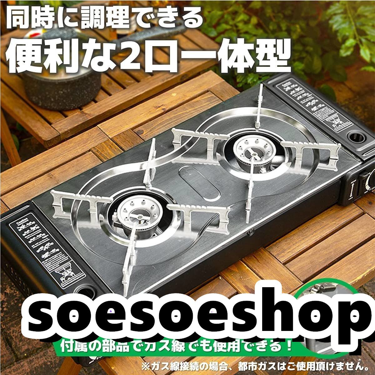 - 人気★カセットストーブ カセットコンロ 耐荷重30kg 強火力2.5kW×2 強火力コンロ 防風 ガスボンベ式 2連 アウトドア ケース付き