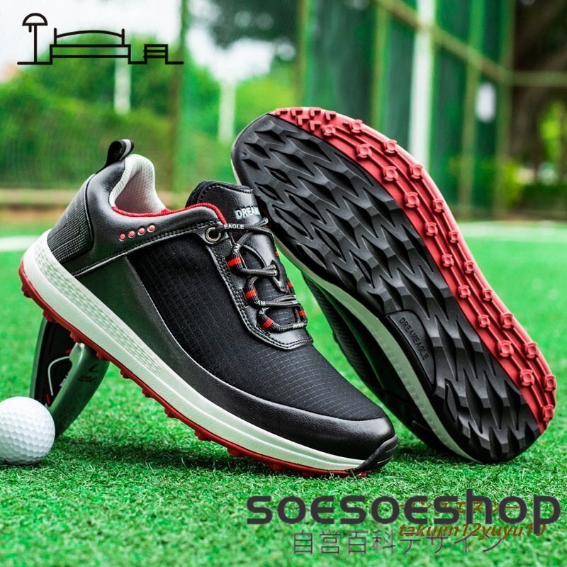 - 絶賛★ゴルフシューズ スポーツ運動靴 メンズ 通気性 スニーカー 防水 防滑 耐摩耗性 ウォーキング 快適 幅広弾力性 フィット感 黒 26.5cm