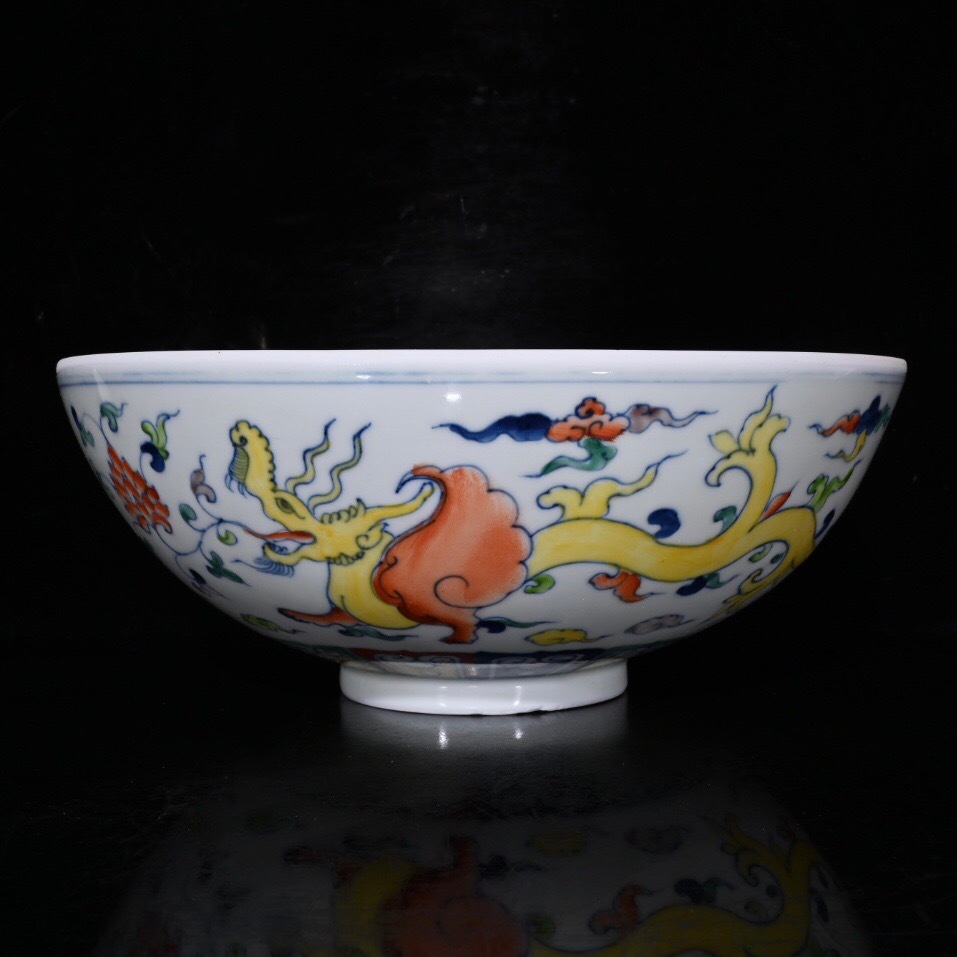 - 【超珍館蔵】明 成化年製款 古陶瓷品 斗彩 神獣紋 供碗 置物 古賞物 古美術品 稀少珍蔵品