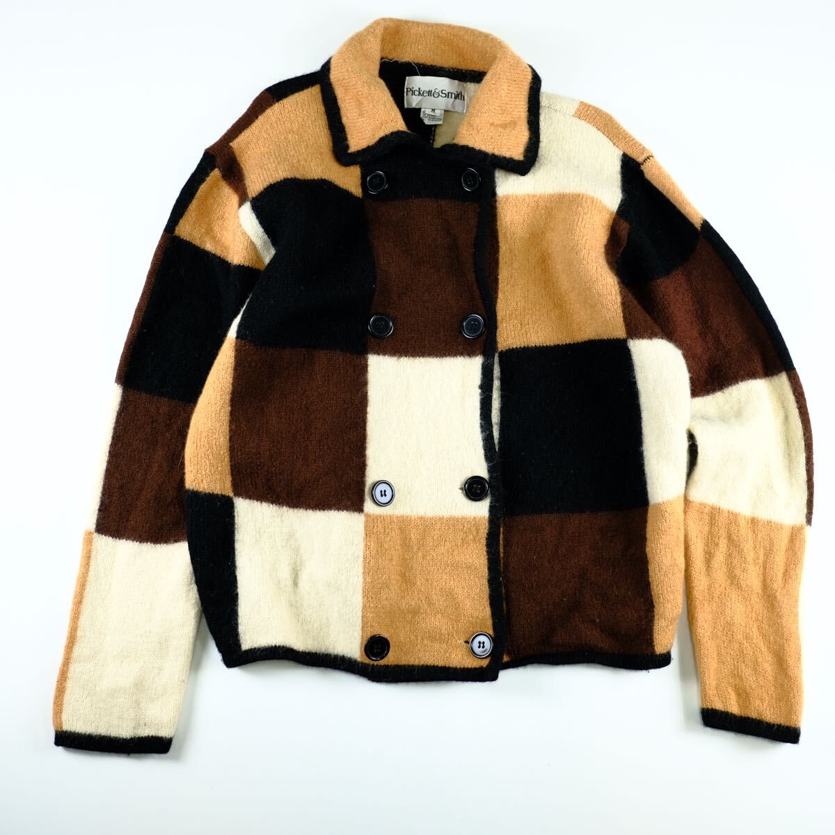 - 1980s ビンテージ ダブルブレスト パッチワークニットセーター カーディガン 古着屋 ユーロ レアデザイン アート ジャケット