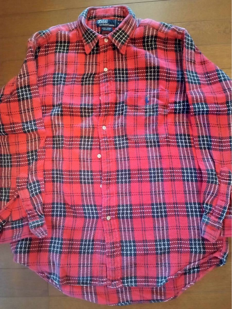 - ラルフローレン チェックネルシャツ 赤 M 厚手